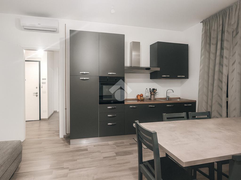 L’appartamento è stato recentemente ristrutturato ed è composto dal soggiorno con cucina, dalla camera matrimoniale, da un locale studio/cameretta e dal bagno finestrato con doccia.