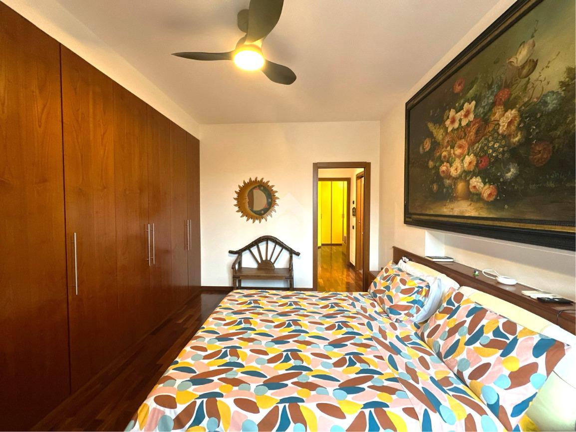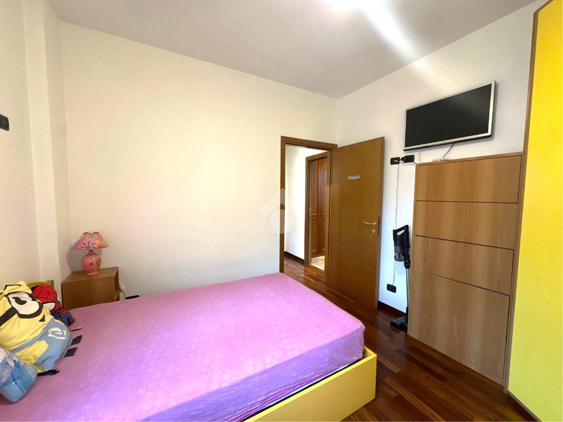 L'appartamento al primo livello è composto da un ampio soggiorno, una cucina separata e abitabile dotata di porta-finestra con accesso al balcone, una camera matrimoniale con bagno privato finestrato con doccia, una cameretta e un secondo bagno finestrato con vasca.