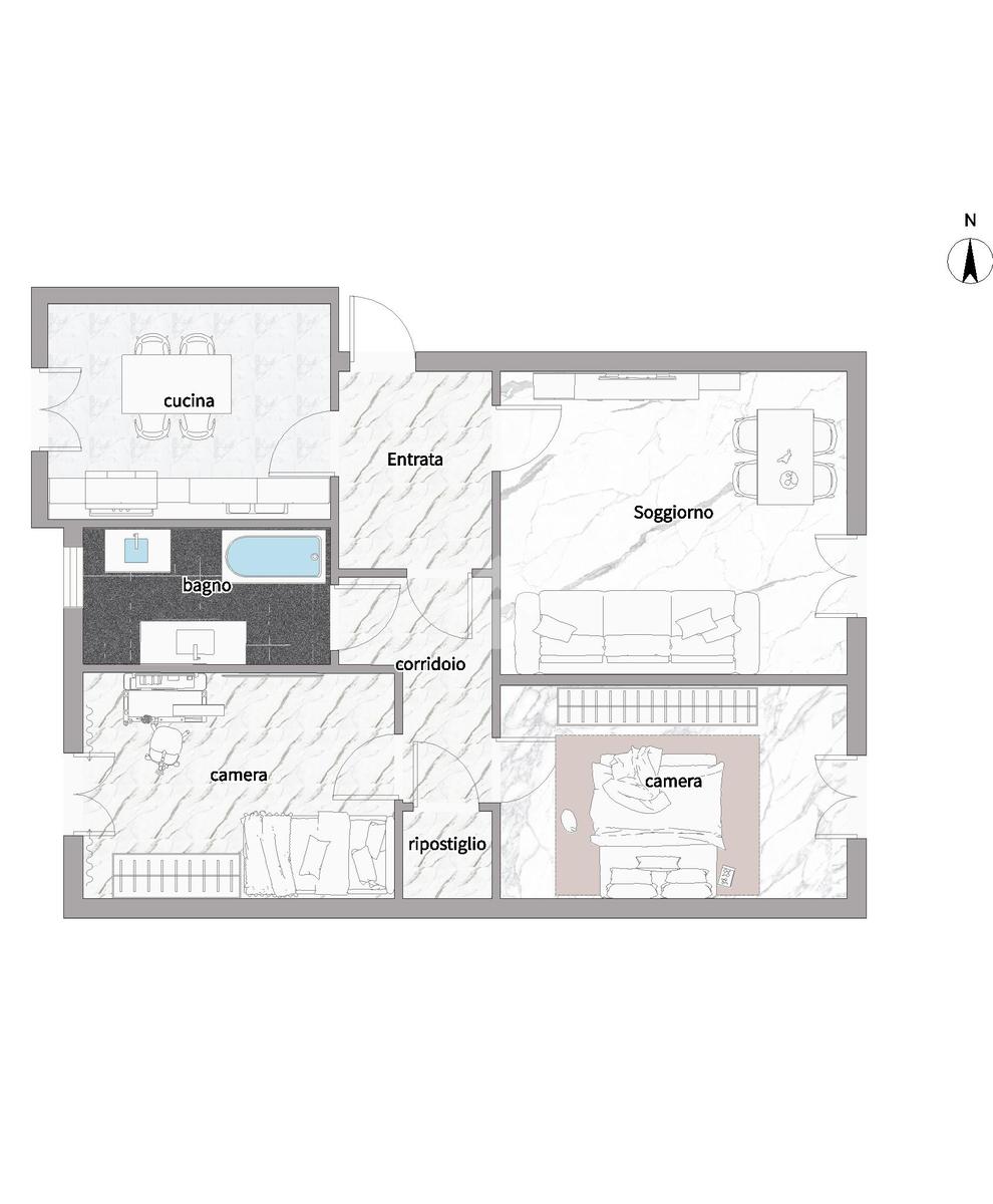 L’appartamento è posto al piano rialzato e gode di una doppia esposizione, che garantisce un’ottima luminosità naturale durante tutto l’arco della giornata.