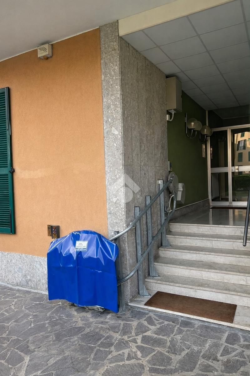 Per agevolare l’accesso all’abitazione è presente un montascale di proprietà, installato nelle parti comuni, utile per superare i gradini di accesso al vano scala condominiale.