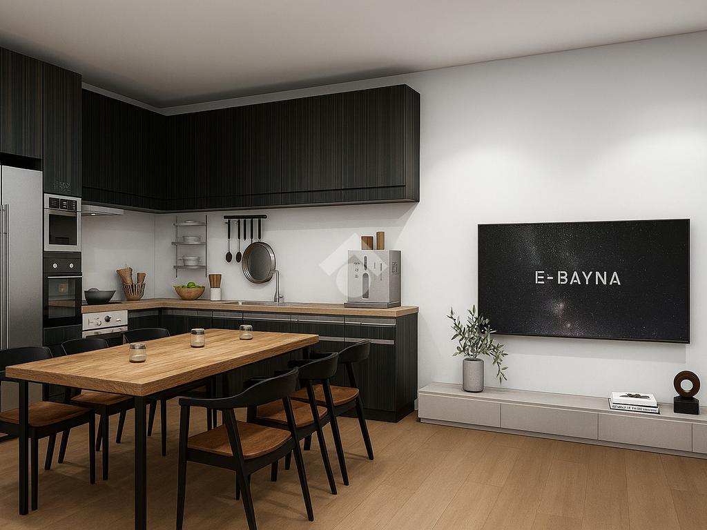 al piano terra, un’ampia zona living open space con cucina a vista, lavanderia, ripostiglio e box doppio in larghezza con accesso diretto all’abitazione;